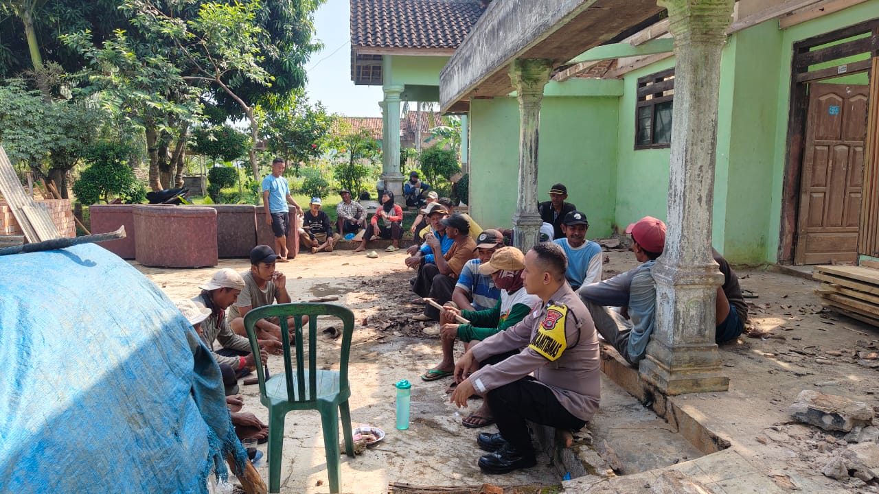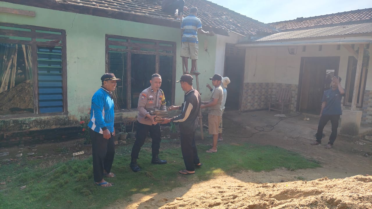 Hotnews.co.id Pringsewu – Bhabinkamtibmas Polsek Sukoharjo, Aipda Heri Purwanto, hadir dan ikut membantu warga saat melaksanakan renovasi rumah di Pekon Srikaton, Kecamatan Adiluwih, Kabupaten Pringsewu pada Rabu (10/9/2025).