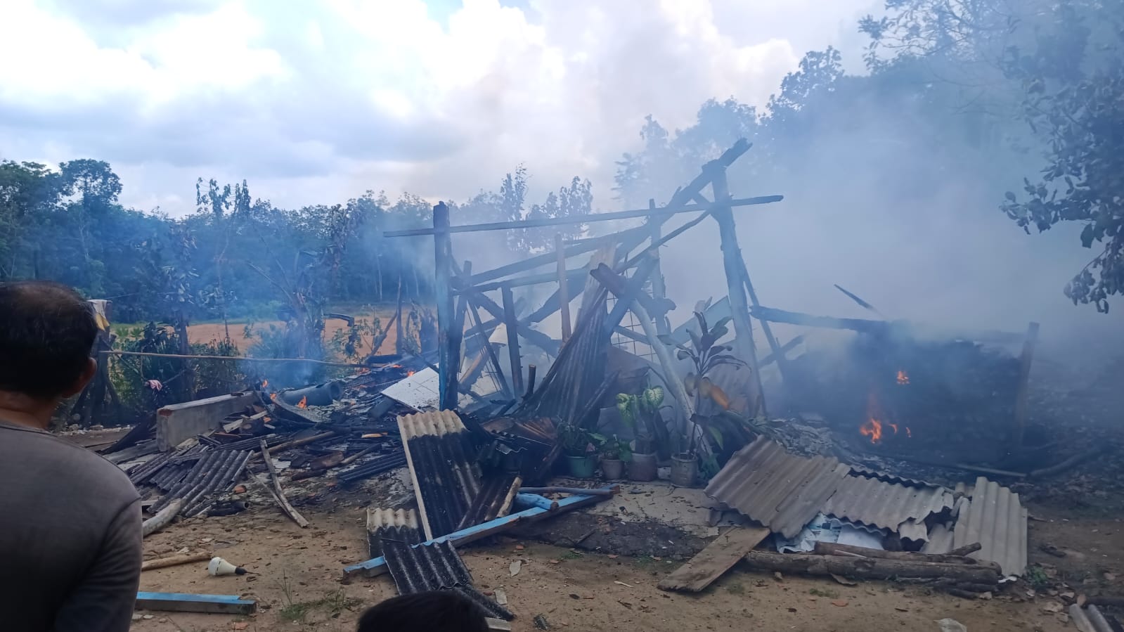 Akibat Konsleting Listrik, Sebuah Rumah Di Kampung Tri Tunggal Jaya Tulang Bawang Hangus Terbakar