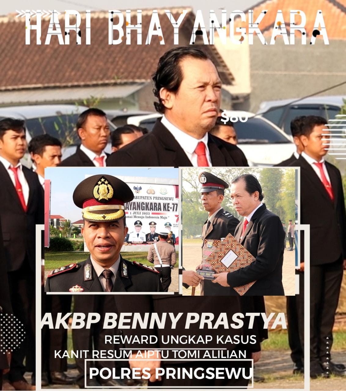 Lampung – Momen Hari Bhayangkara ke 77, dua anggota Polri dan satu warga mendapatkan penghargaan dari Kapolres Pringsewu Lampung. Sabtu (01/07/23).