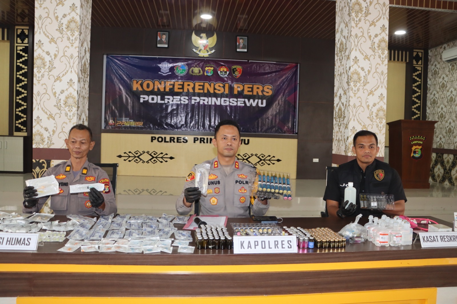 Hotnews.co.id Pringsewu – Satuan Reserse Kriminal (Satreskrim) Polres Pringsewu berhasil mengungkap praktik ilegal distribusi produk farmasi yang tidak memenuhi standar keamanan, mutu, dan manfaat. Dalam pengungkapan ini, petugas mengamankan seorang wanita berinisial CP (28), warga Pekon Way Jaha, Kecamatan Pugung, Kabupaten Tanggamus.