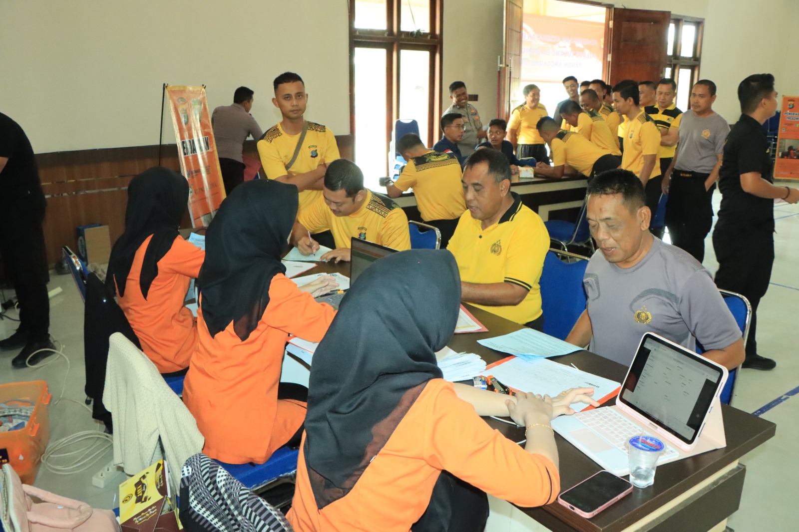 “Kegiatan ini merupakan kegiatan rutin setiap 1(satu) Tahun sekali, dimana kali ini sekitar 96 Personel melaksanakan kegiatan Dari 100 personel yang tersprint di lingkungan jajaran Polres Tulang Bawang Barat.” Ungkap Kapolres Tulang Bawang Barat AKBP Sendi Antoni, S. I.K, M. I.K, melalui Kasi Dokes Aiptu Badar Johan, AMKG