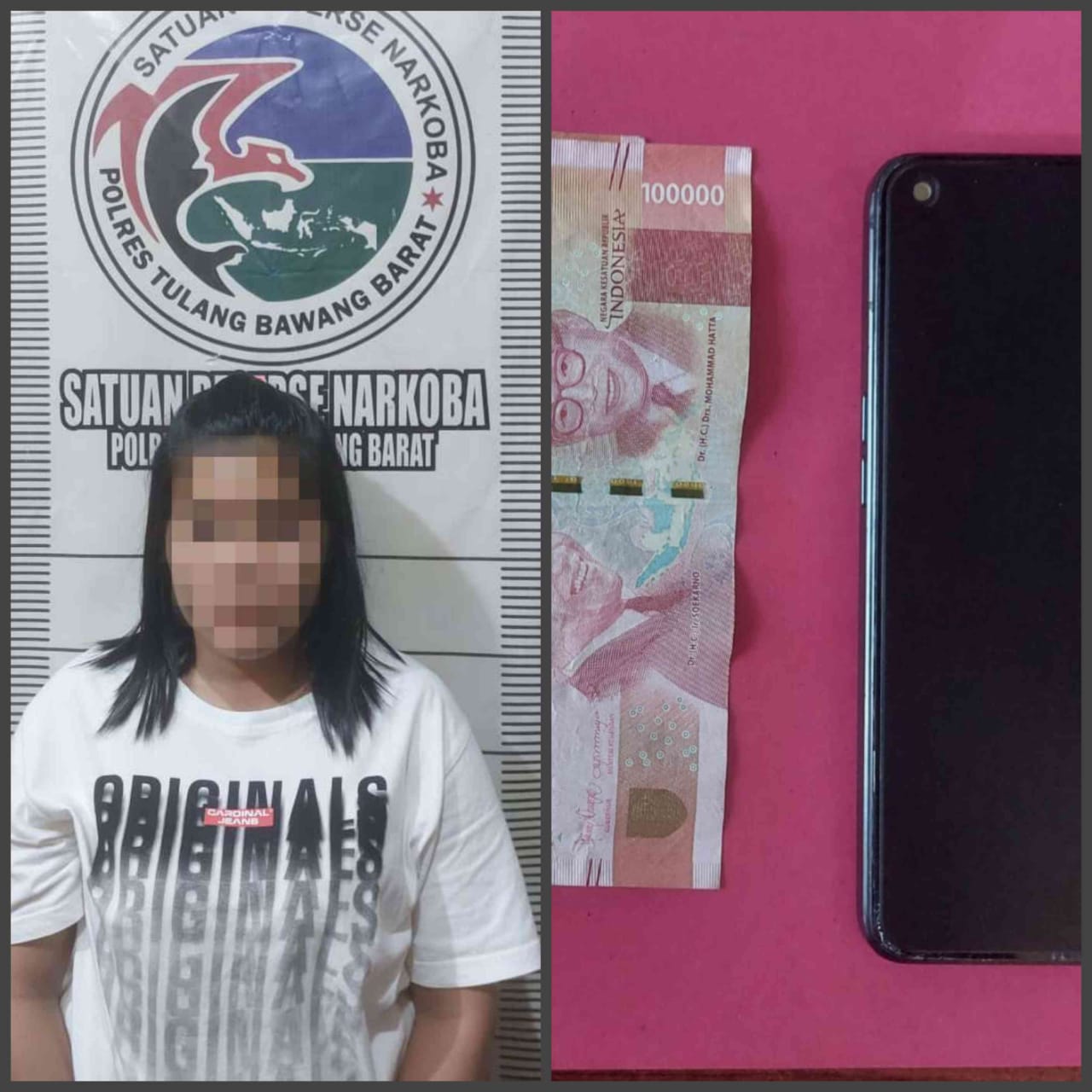 Dalam penggeledahan oleh Tim Opsnal Sat resnarkoba, sejumlah barang bukti yang di dapat dari tangan pelaku dan berhasil mengamankan 1 (satu) unit handphone android merk OPPO RENO 7 warna hitam dengan nomor IMEI 1 : 860891052119915 dan nomor IMEI 2 : 860891052119907, Uang tunai sejumlah Rp. 800.000,- (delapan ratus ribu rupiah) dengan pecahan uang Rp. 100.000,- (seratus ribu rupiah) sebanyak 8 (delapan) lembar.