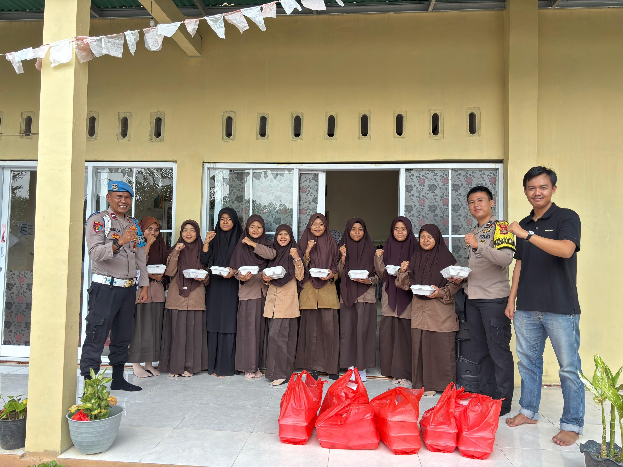 “Terima kasih kepada bapak-bapak polisi atas nasi kotaknya. Ini sangat membantu kami,” ujar seorang Santri yang menerima bantuan dengan penuh rasa syukur.