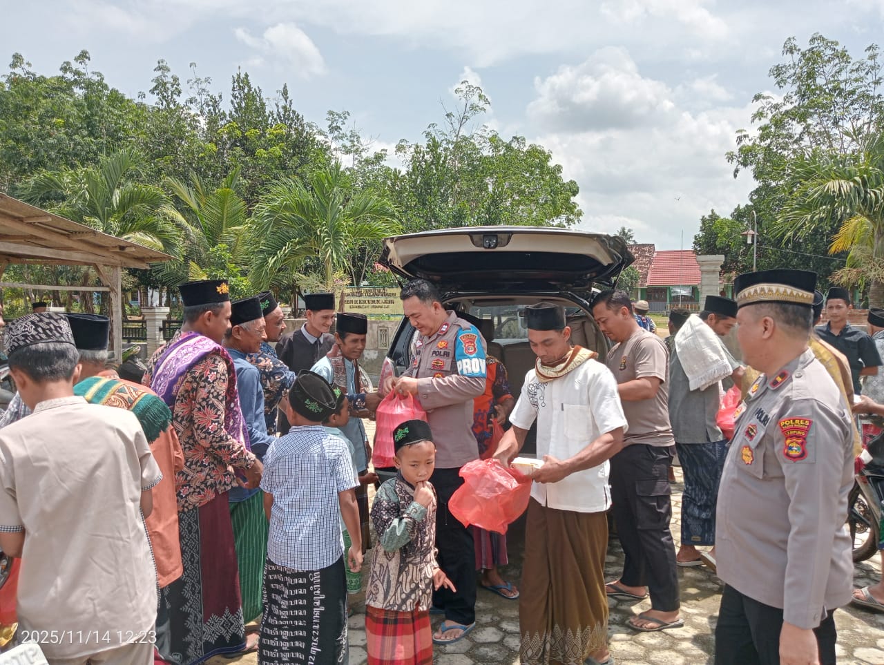 Di waktu berbeda, Polsek Dente Teladas melaksanakan bakti sosial di Masjid At-Taawun, Kampung Pendowo Asri. Kegiatan dipimpin oleh Ps. Kasium Aiptu Rahmat Pujianto, S.H., bersama personel Polsek serta pengurus Yayasan Al Istiqomah Mutiara Hati. Sebanyak 30 anak yatim piatu menerima bingkisan berisi kebutuhan harian. Senyum anak-anak dan suasana penuh kekeluargaan menambah hangat kegiatan yang berlangsung hingga pukul 11.15 WIB.