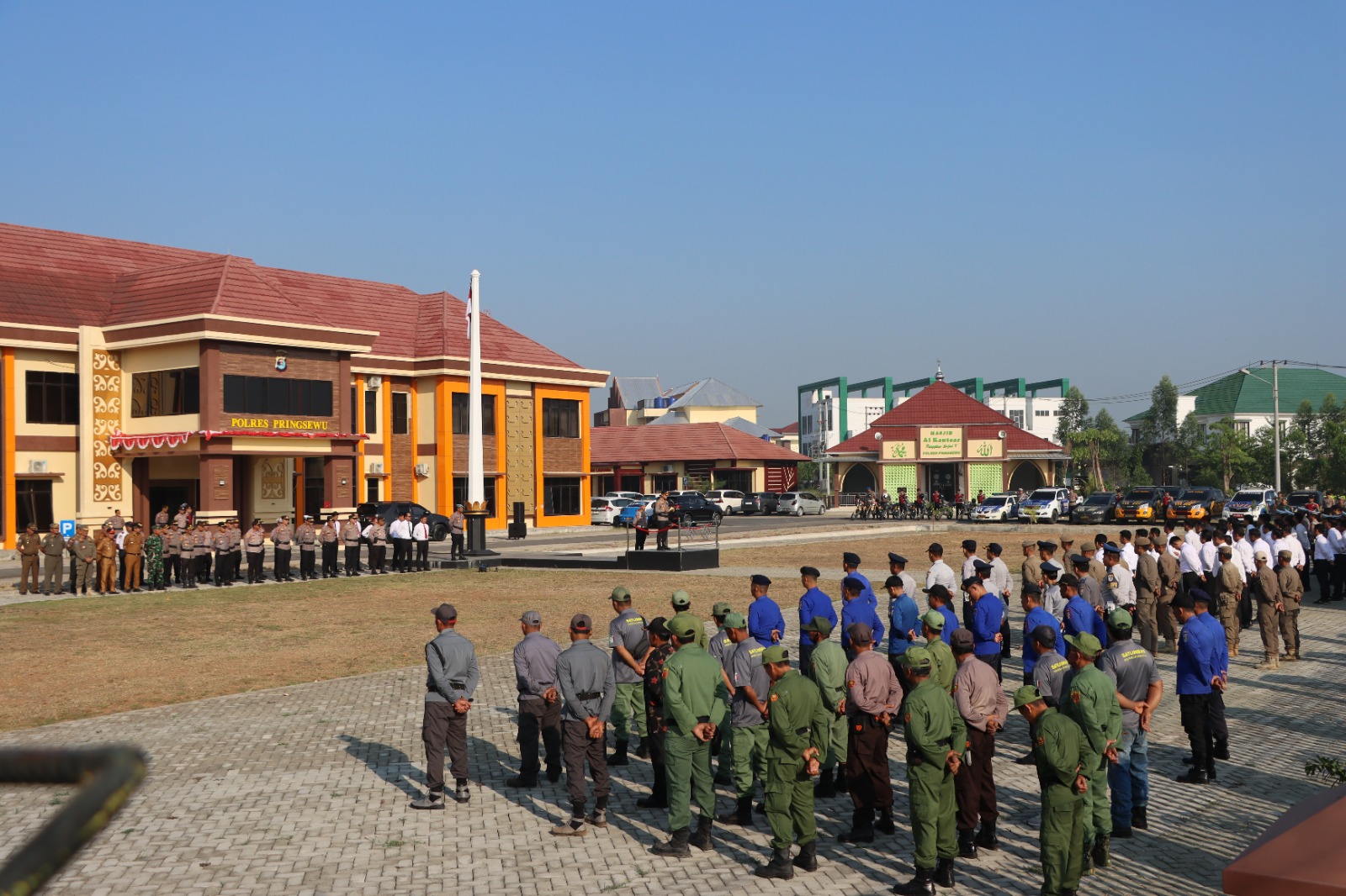 Apel yang dimulai pukul 07.45 WIB ini dihadiri dihadiri oleh jajaran Forkopimda dan sejumlah elemen masyarakat lainnya. kegiatan ini juga melibatkan berbagai instansi terkait seperti, TNI, Satpol PP, Dishub, BPBD dan Satuan Perlindungan Masyarakat. ketertlibatan berbagai pihak ini sebagai bentuk sinergitas dalam menjaga keamanan dan ketertiban selama berlangsungnya Pilkada serentak 2024.
