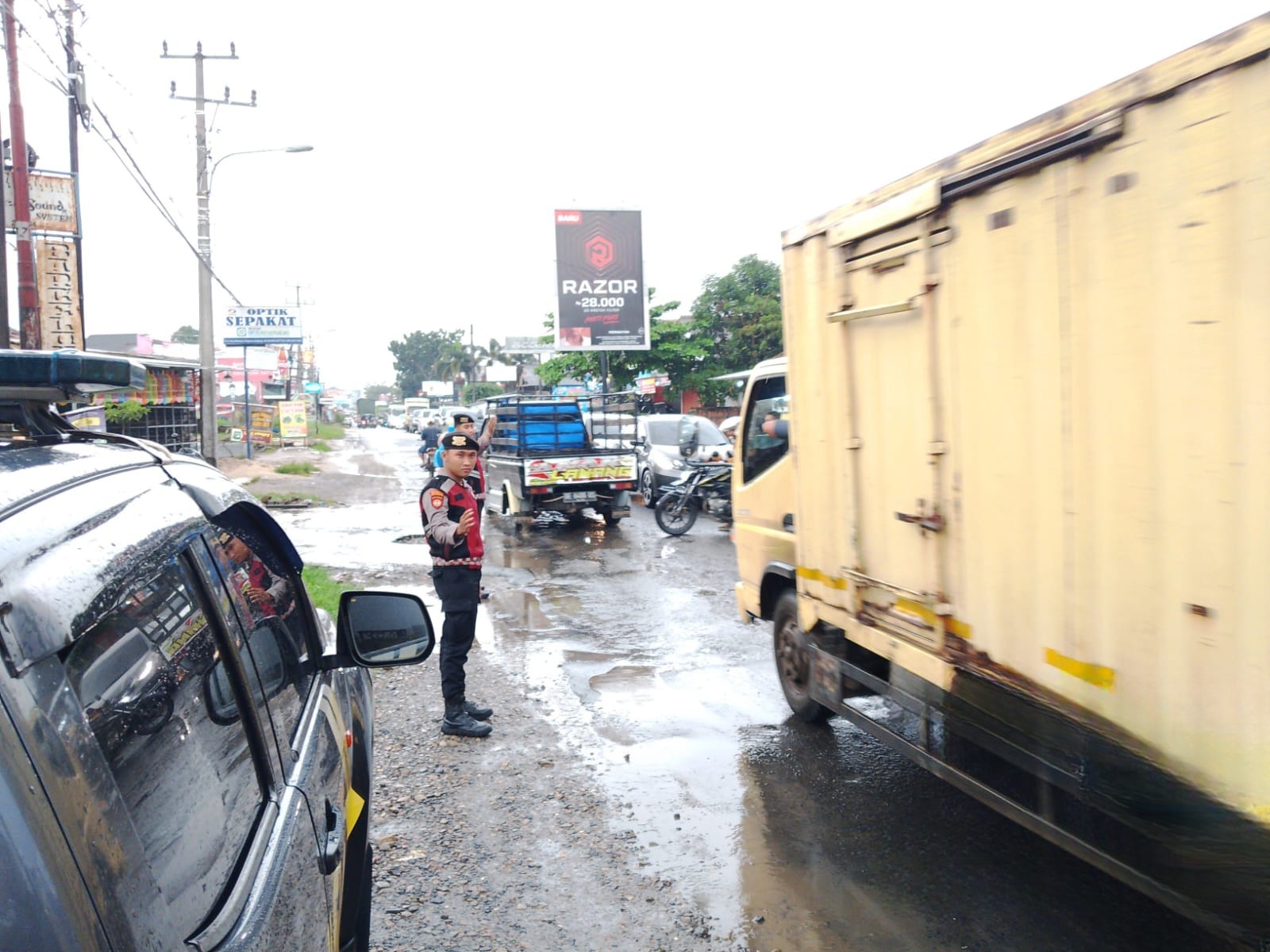 Pantauan di lokasi menunjukkan personel Sat Samapta sigap mengatur arus kendaraan yang sempat tersendat akibat kondisi jalan basah dan genangan air. Dengan pendekatan humanis, petugas membantu pengendara roda dua maupun roda empat agar tetap tertib dan aman saat melintas, sekaligus mencegah potensi kecelakaan lalu lintas pascahujan.