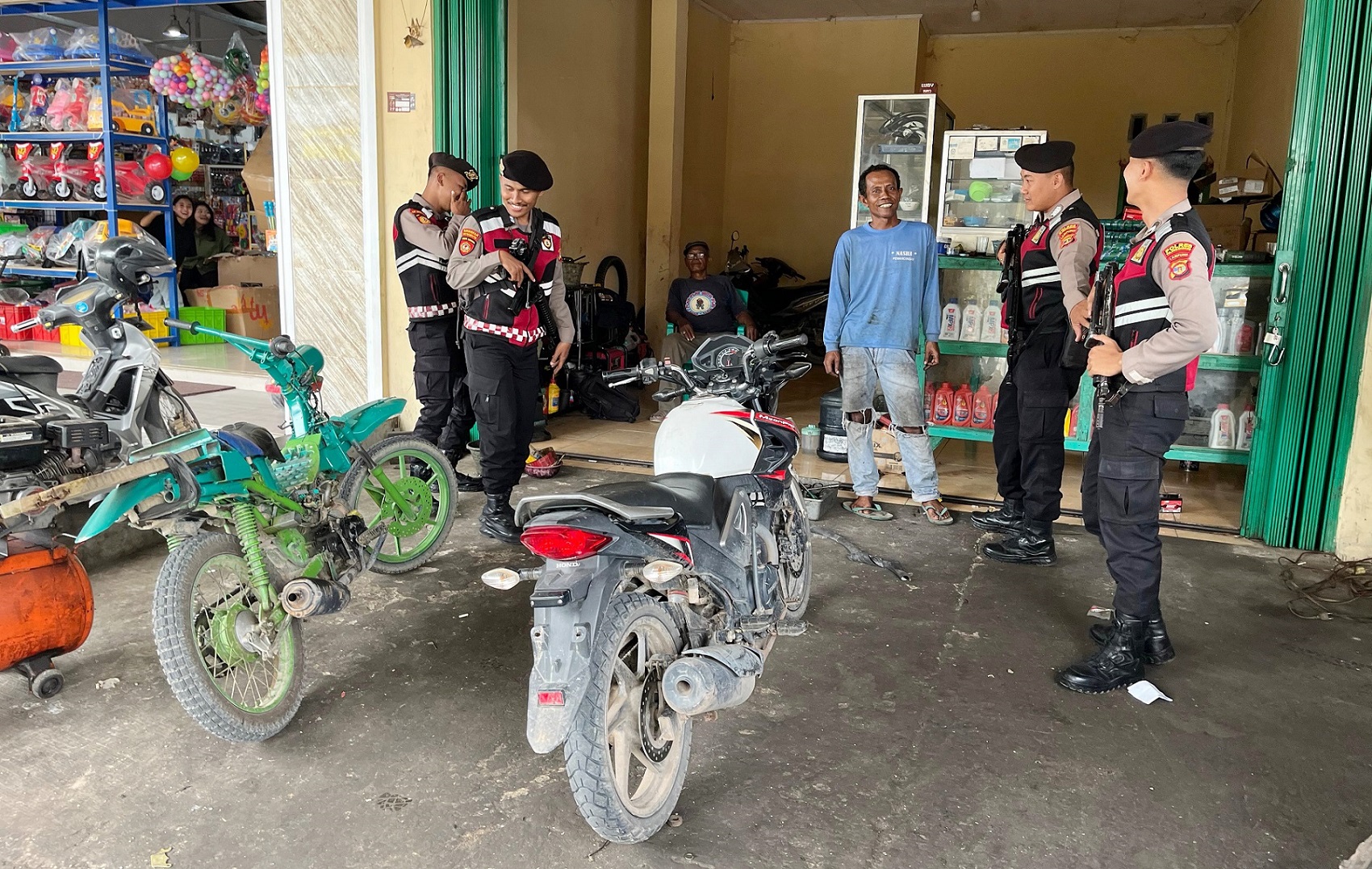 Menurutnya, 4 (empat) lokasi yang menjadi sasaran patroli jalan kaki Satuan Samapta Polres Tulang Bawang tersebut yakni Kounter Emon, Bengkel Sepeda Motor Mega, Toko Mainan Mandiri Toys, dan Apotek Kibang Farma, yang semuanya berada di Jalan Ethanol, Kampung Tunggal Warga.