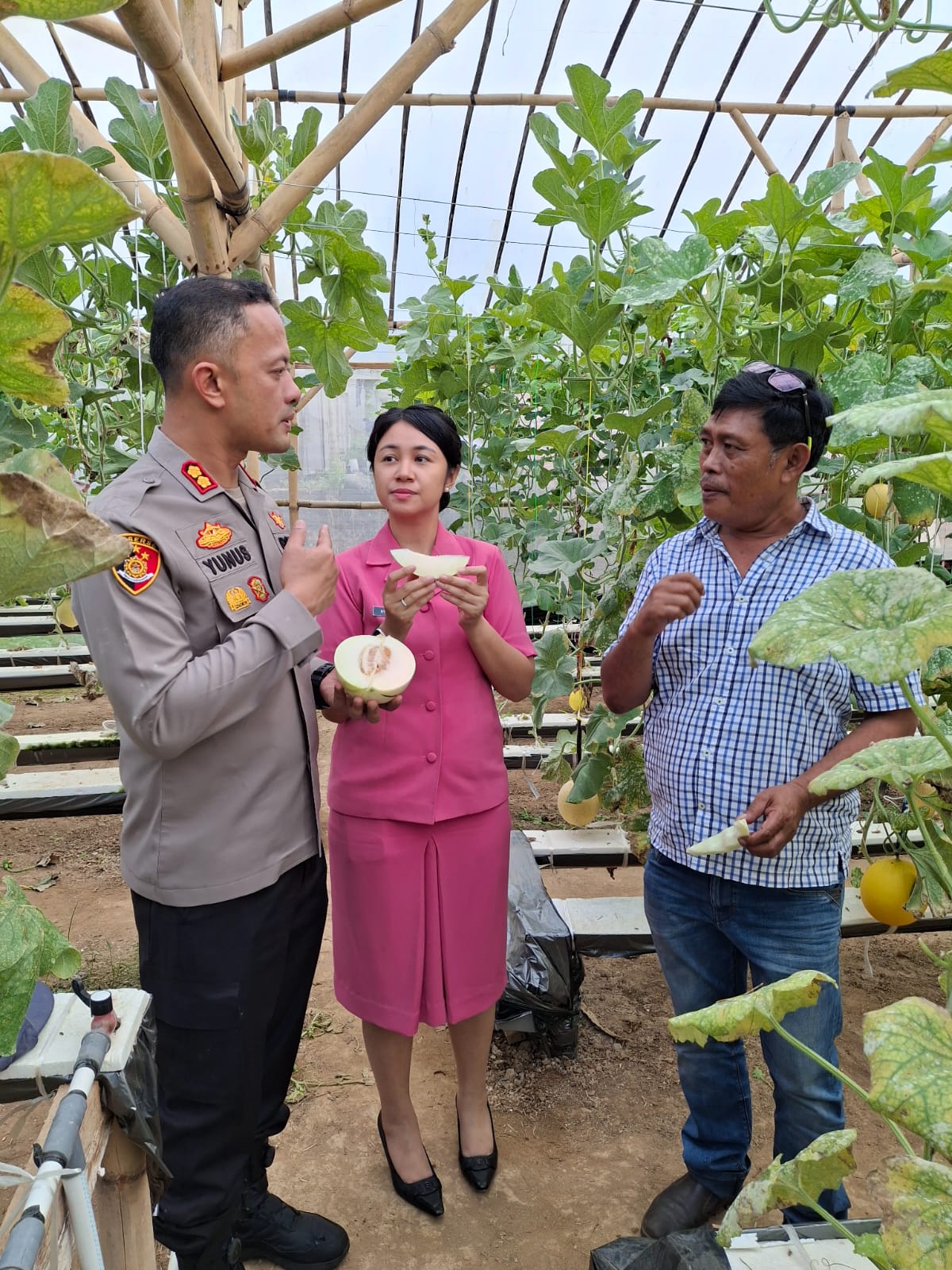 “Melon di sini ada tiga varietas premium yang kualitasnya tak kalah dengan buah impor. Justru, inilah yang harus kita tonjolkan. Wisatawan bisa datang, melihat proses perawatan, bahkan langsung mencicipi di kebun,” ujar AKBP Yunnus usai berkeliling.